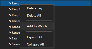 To add a tag to the Watch Window, select any tag and right click on it. Then choose Add to Watch from the context menu.