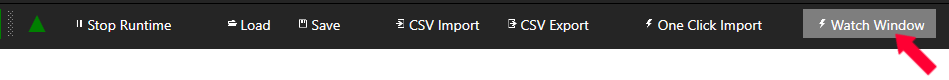 The Watch Window is accessible from the Configure Tags screen. It can be opened by clicking the Watch Window button on the top menu bar.