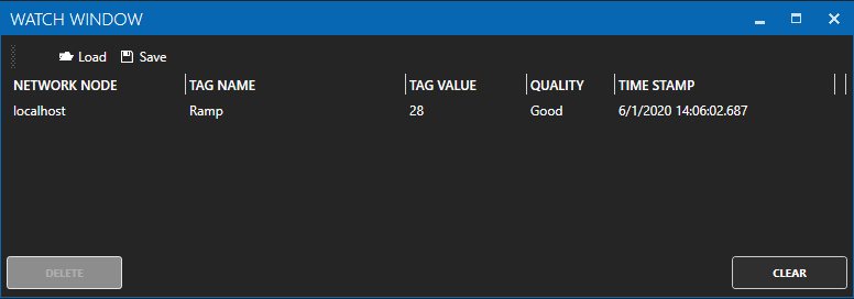 The Watch Window is a feature of the OAS Configure Application that allows you to view the value of multiple tags at one time. You can use it to view multiple tags from one Service installation or from multiple Service Installations at the same time.